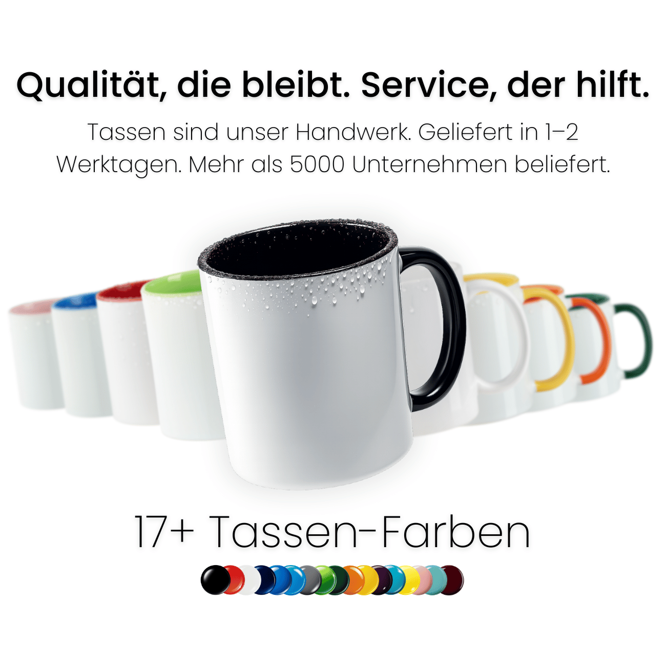 Unsere Tassen werden mit höchster Präzision in Deutschland bedruckt – langlebig, spülmaschinenfest und in bester Qualität.